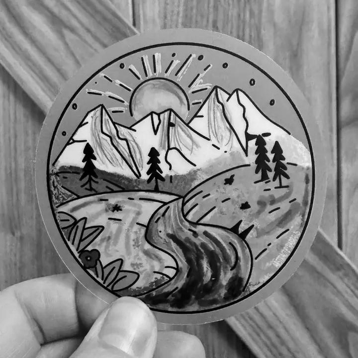 Hand drawn mountain scene with the Progress Pride Flag used for the colors. Frosted clear background3"Hand drawn by AbstractbyRabrams- These matte laminated stickers are durable outdoors and ready to stick as bumper stickers, window stickers, and more.- Dishwasher and microwave-safe, and can be applied to food safe containers.- They are weatherproof and waterproof, but can't stay submerged in water (like on the bottom of a boat).