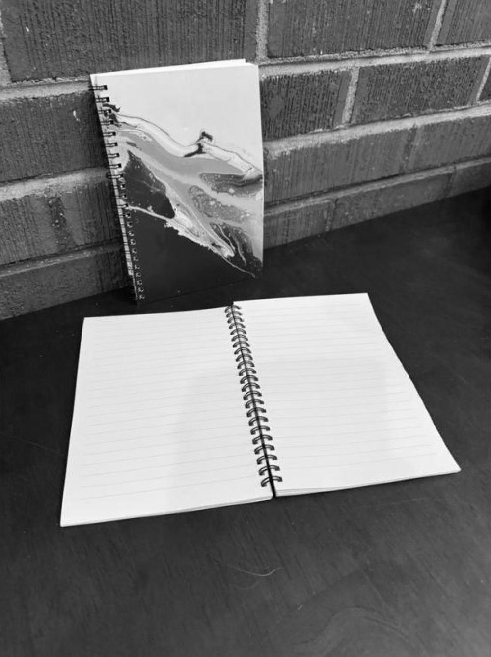 Who doesn't love a notebook? This can be for writing down you daily thoughts, something you want to write down to share with a loved one, a journal, a to-do list. The possibilities are endless.Both the front and the back cover have the same painting and come from an original AbstractbyRabrams painting.Water resistant and velvety smooth to the touch, this notebook will hold up over time and always feel like magic in your hands.PRODUCT SPECS:5.5"x8" softcover notebook.120 pages80lb Uncoated paper Wire-O spiral bindingPrinted front & back cover