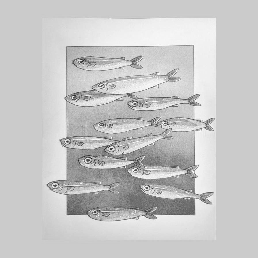 Christina Hu Risograph 8.5x11: School of Fish
