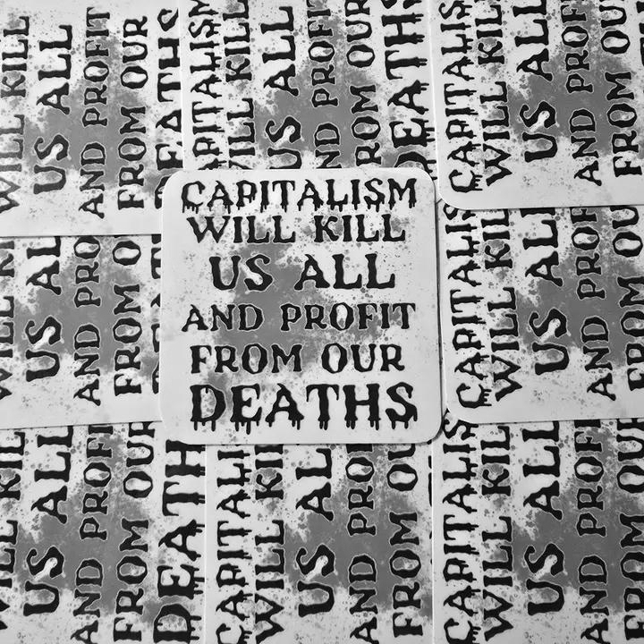 Femmearchist Sticker: Capitalism Will Kill Us All and Profit from our Deaths