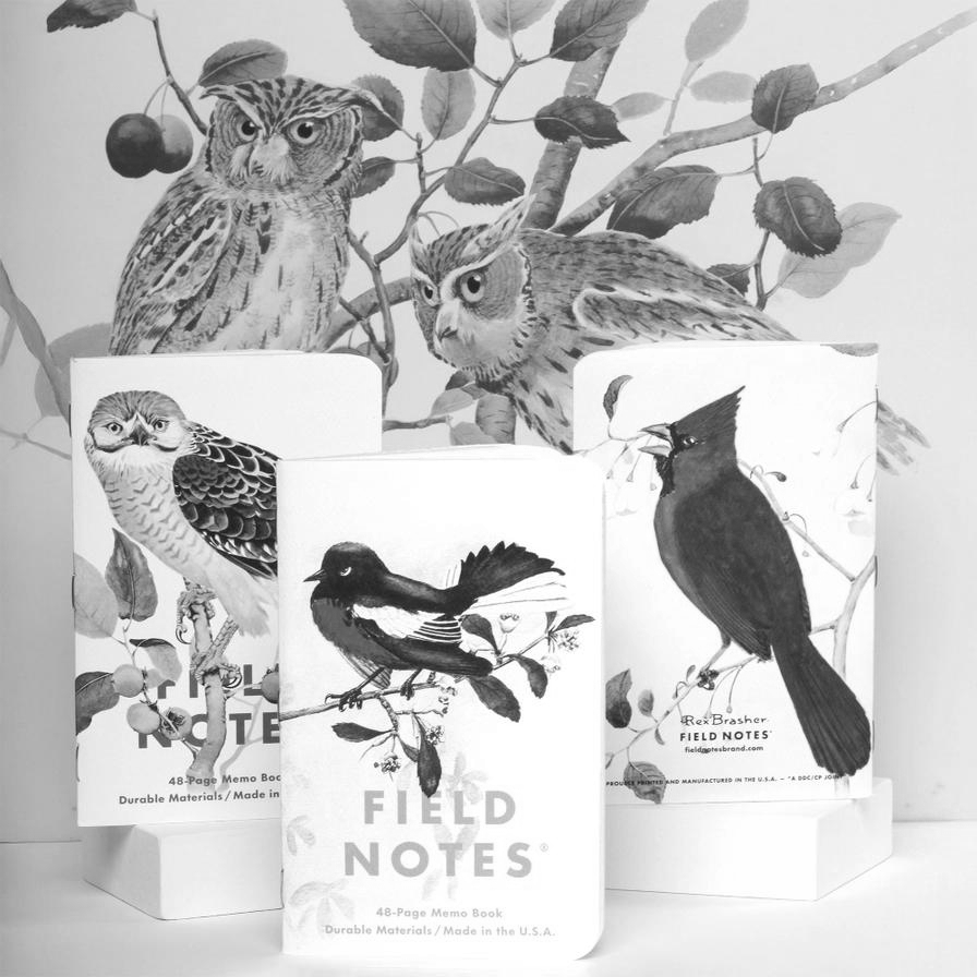 Our 64th Quarterly Limited Edition for Fall 2024 is “The Birds and Trees of North America” Edition, featuring the artwork of Rex Brasher (1869–1960).Rex Brasher’s artistic talent, love of nature, technical expertise, and persistence offer an inspiring story that should be better known by anyone with an interest in birds, nature, or art. From a young age, Brasher committed to visiting all of America’s bird species in their natural habitats. He spent a lifetime traveling, collecting notes and drawings, writing personal, insightful descriptions, and painting and re-painting birds.We’ve carefully reproduced six of Brasher's colorful illustrations on two 3-Packs of Field Notes Ruled Memo Books. Covers are a lovely felt-textured 100#C Mohawk Via “Pure White,” bound by three stainless steel staples and ruled paper inside.Pack C features: Painted Redstart, Cardinal, and Redshoulder Hawk.