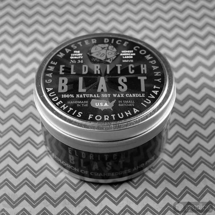 Like a beam of crackling energy issued forth from a warlock's fingers, this tart fragrance packs a berry blast, tempered by the herbaceuous aroma of pine needles.Fragrance notes:Top: Cranberry, Red Currant, CinnamonMiddle: Green Leaves, Black CurrantBase: Pine, Fir, VanillaKey features: * Made of all-natural, sustainable soy wax * Made by hand in small batches in Utah * Inspired by the Eldritch Blast warlock spell in Dungeons & Dragons * The perfect geeky gift * Burns for 40-56 hours