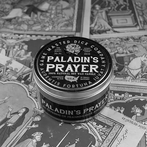 In shining armor, the paladin kneels in holy supplication. Channeling the divine, he prays for the strength to do what he knows what must be done—to protect the weak and defenseless, to keep faith, at all times to speak the truth, and to live by honor and for glory.Scented with frankincense and myrrh, which have been prized for their use in incense and perfumes, this candle hearkens to their historical use in religious rituals.This fragrance is infused with natural essential oils, including coriander seed, cumin, lemon, orange, patchouli, and olibanum.Fragrance notes: * Top: Bergamot * Middle: Amber * Base: Frankincense, Myrrh, Oud, Powder Key features: * Made of all-natural, sustainable soy wax * Made by hand in small batches in the USA * Inspired by the Paladin class from Dungeons & Dragons * The perfect geeky gift * Burns for 40-56 hours