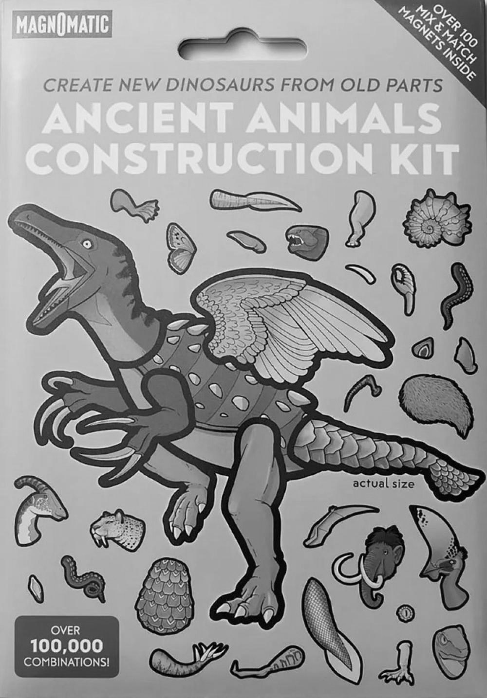 The Ancient Animals Construction Kit is perfect for your favorite aspiring paleontologist. Inside, you'll find over 100 magnetic parts inspired by extinct animals that you can piece together into new creatures on your fridge, cookie sheet, or filing cabinet. This kit also includes letters and numbers so you can name and date your discoveries and share them with the world. • Hours of screen-free fun• Over 100,000 possible combinations• High-quality magnets made for stacking• Made by real artists - No A.I. here!