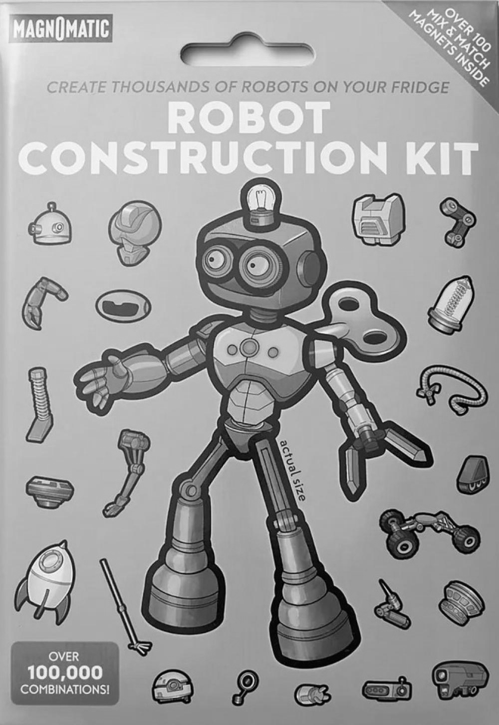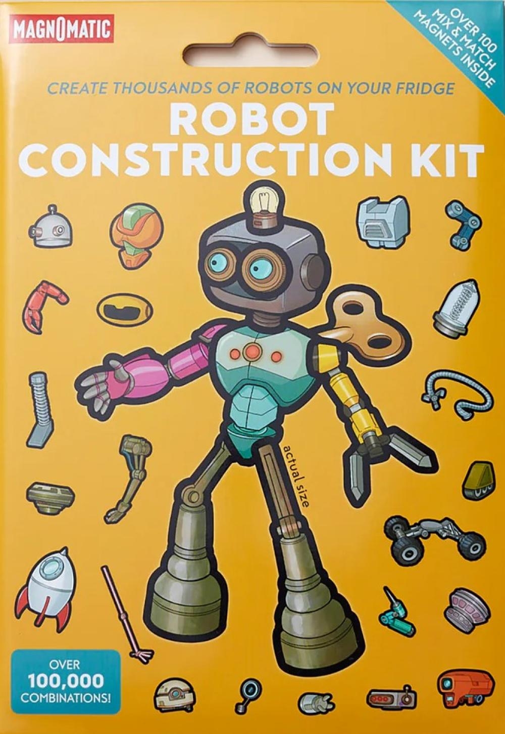 The Robot Construction Kit is the perfect home workshop for your favorite tinkerer. Inside, you'll find over 100 magnetic parts you can use to construct hundreds of thousands of machines on your fridge, cookie sheet, or filing cabinet! You'll also find letters, so you can name your creations and share them with the world. • Hours of screen-free fun• Over 100,000 possible combinations• High-quality magnets made for stacking• Made by real artists - No A.I. here!