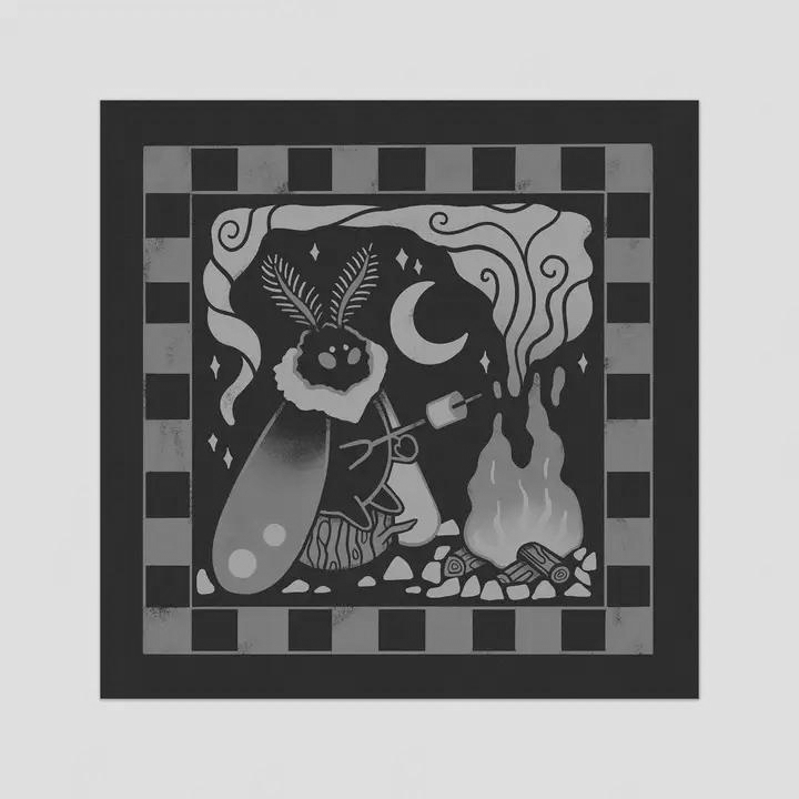 Odd Hare Goods Art Print 4.7x4.7: Mothman Camping