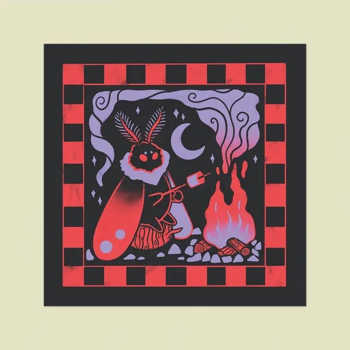 Get notified of new releases like Odd Hare Goods Art Print 4.7x4.7: Mothman Camping