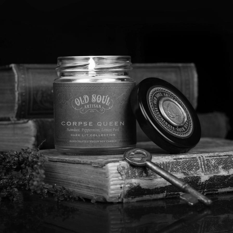 Get notified of new releases like Old Soul Artisan 4 oz. Soy Candle: Corpse Queen (Sawdust, Peppermint, Lemon Peel)