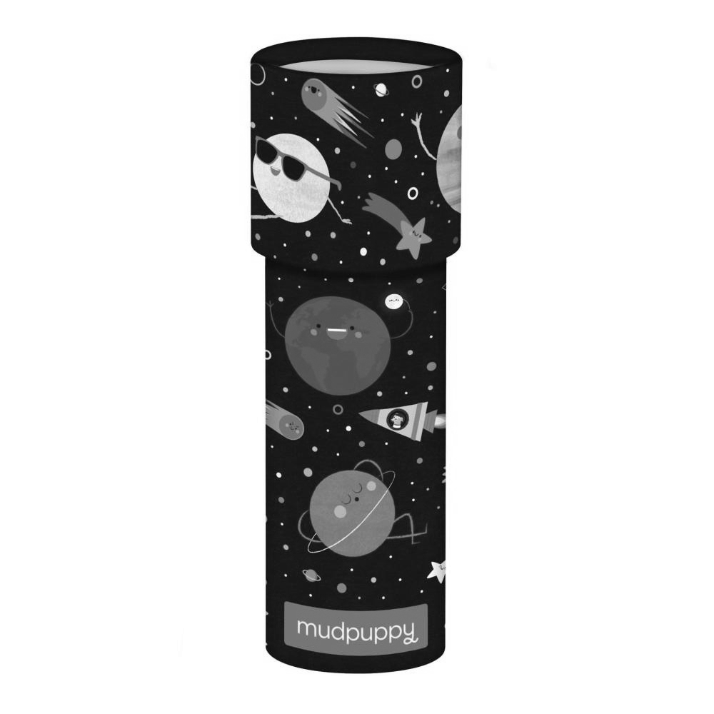 Look through the eyepiece and experience the magic of the kaleidoscope. The Solar System Kaleidoscope from Mudpuppy reveals colorful jewels when you turn the viewing tube. The colorful artwork features planets, comets, and spaceships!- 6.5" tall x 2.25" diameter, 6 cm diameter, 16.5 cm tall- Sturdy matte-finish board material- Ages 3+- All Mudpuppy products adhere to CPSIA, ASTM, and CE Safety Regulations- Classic toy format
