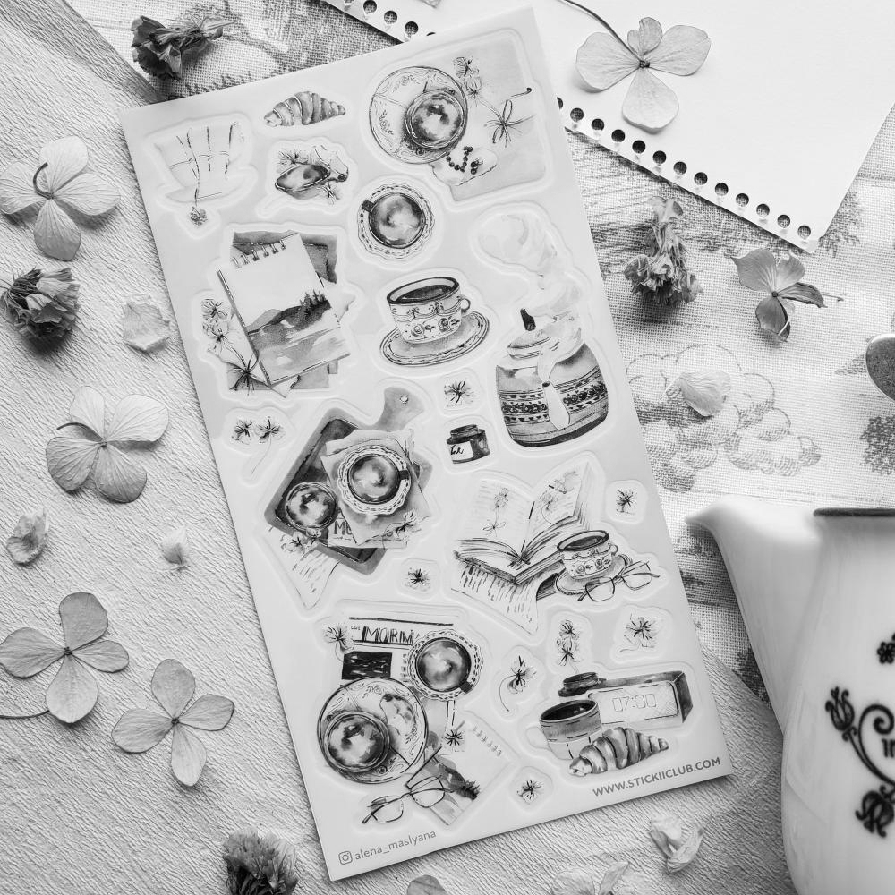 โ๐ธ Start your day with the calm beauty of @alena_maslyana's serene morning moments. With delicate cups of tea, warm croissants, and cozy notebooks, this peaceful sheet captures the perfect quiet morning. Soft watercolors bring to life a world of slow mornings, where time moves gently and every sip feels like a hug in a cup. Whether you're journaling, sipping tea, or dreaming of a tranquil escape, these stickers will add a touch of morning bliss to your day. โจ๐