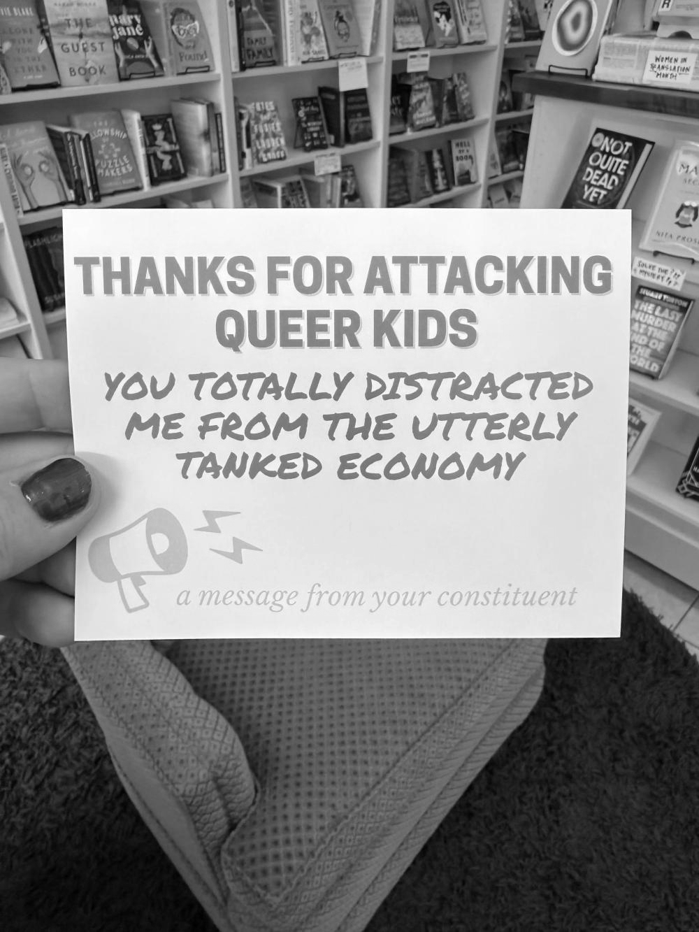 Strong Feelings Press Political Postcard: Thanks For Attacking Queer Kids, You Totally Distracted Me