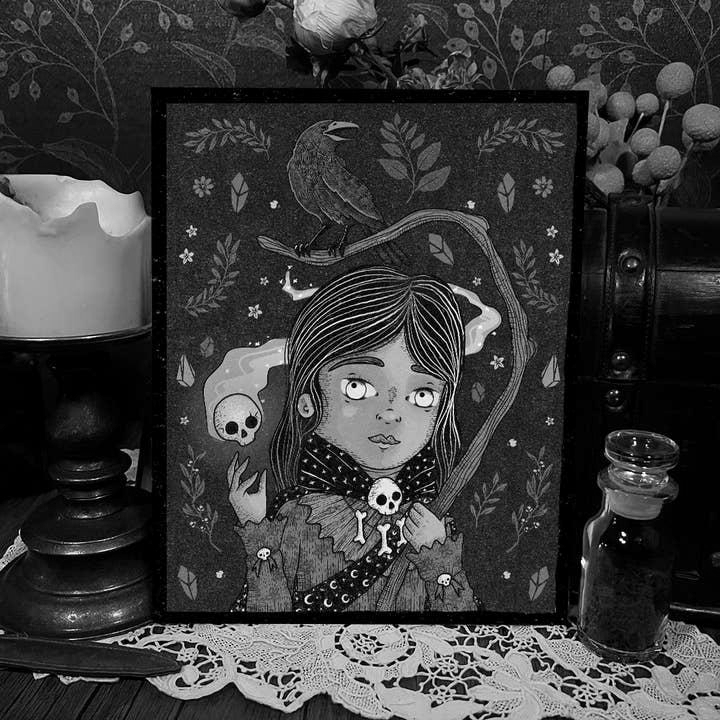 The Orphans of Dudleytown Art Print 8x10: Necromancer and Raven Familiar