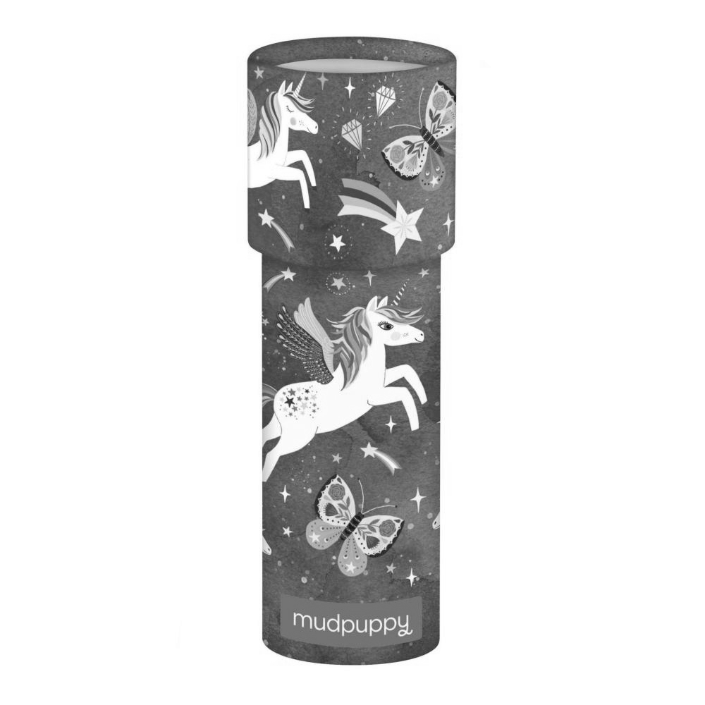 Look through the eyepiece and experience the magic of the kaleidoscope. Unicorn Magic Kaleidoscope from Mudpuppy reveals colorful jewels when you turn the viewing tube. The colorful artwork features unicorns, butterflies and shooting stars!- 6.5" tall x 2.25" diameter, 6 cm diameter, 16.5 cm tall- Sturdy matte-finish board material- Ages 3+- All Mudpuppy products adhere to CPSIA, ASTM, and CE Safety Regulations- Classic toy format