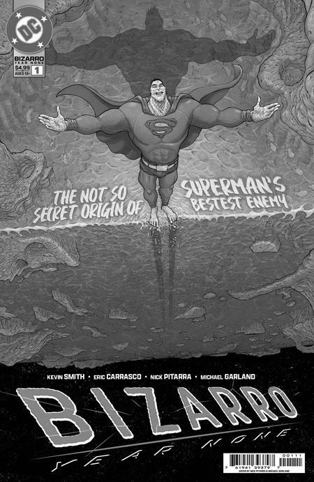 KEVIN SMITH, ERIC CARRASCO, AND NICK PITARRA TELL THE INDEFINITIVE ORIGIN OF SUPERMAN'S BESTEST ENEMY EVER! This am how Bizarro got finished! Kevin Smith and Eric Carrasco team up with visionary artist Nick Pitarra to tell the definitive, indefinitive origin of the beloved backward bad boy! When Superman's pal Jimmy Olsen and Clark Kent's boss Perry White leave the Planet for a strange adventure in outer space, they discover a dimension that mimics Metropolis and reveres its legendary newspaper as an article of faith! But is the being behind it all a Superman fan, a creature of chaos, or is he no one at all? Don't be a square: buy Bizarro: Year None!