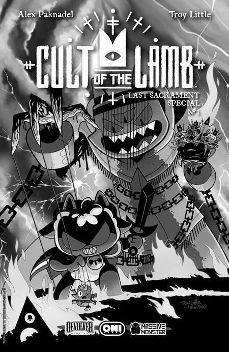 In partnership with Devolver Digital and Massive Monster, Oni Press presents the epic culmination of Cult of the Lamb's groundbreaking comics expansion from esteemed creators Alex Paknadel (Cyclops) and Troy Little (Fear & Loathing in Las Vegas: The Graphic Novel) in our next double-sized, 48-page special! The cult is decimated and its faith shaken in the wake of a shocking and bloody betrayal. Power, duty, and determination will all be tested as Lamb must reckon with the remaining threats of the Old Faith Meanwhile, Ratau—still firm in his faith in the Red Crown—tries to protect and guide Lamb's remaining followers and undermine the blasphemy of the rival camp. As The One Who Waits prepares their return, great sacrifices must be weighed for the future of the Cult of the Lamb.