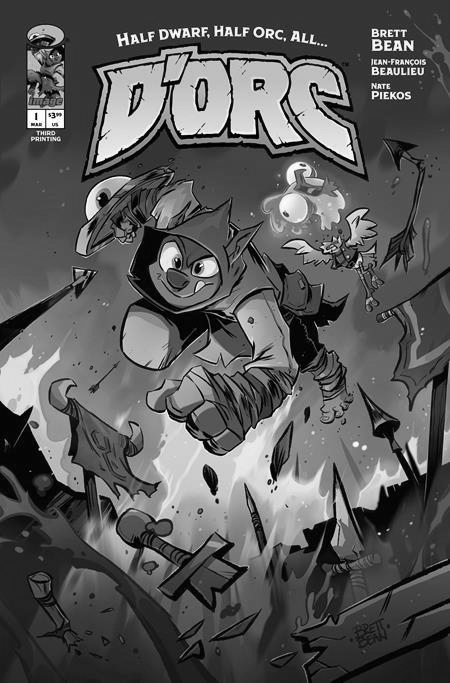 "You had me at magic talking eyeball shield. Brett Bean creates a fantasy world like no other! Don't be a dork, buy D'orc!" —Robert Kirkman, Invincible, The Walking Dead“Hilarious, vivid, endlessly clever, and filled with heart. The best new comic I’ve read in forever!” —Matt Dinniman, Dungeon Crawler CarlArmed with nothing but a magical yet ambitiously violent shield, a lonely orphan stumbles headfirst into Sunderaine’s never-ending war between the Light and Dark. Elves vs. Orcs. Wizards vs. Common Sense. Dragons vs. Literally Everyone. And caught dead-center? D'ORC.With a wholly inconvenient doomsday prophecy, the half dwarf, half orc—all D'ORC—is fated to end the world. Soon, every human, elf, goblin, dwarf, Snargletooth, Necroid, Ice Giant, Trauma Llama, and at least three other unpronounceable magical creatures, will know his name and want him dead. There will also be a chicken. Join fan-favorite artist BRETT BEAN (I HATE FAIRYLAND, DUNGEON CRAWLER CARL THE CROCODILE), colorist JEAN-FRANÇOIS BEAULIEU (I HATE FAIRYLAND), and letterer NATE PIEKOS (MINOR THREATS) for a hilarious high-fantasy romp perfect for fans of CONAN, LORD OF THE RINGS, and of course, GERT's deadpan humor.
