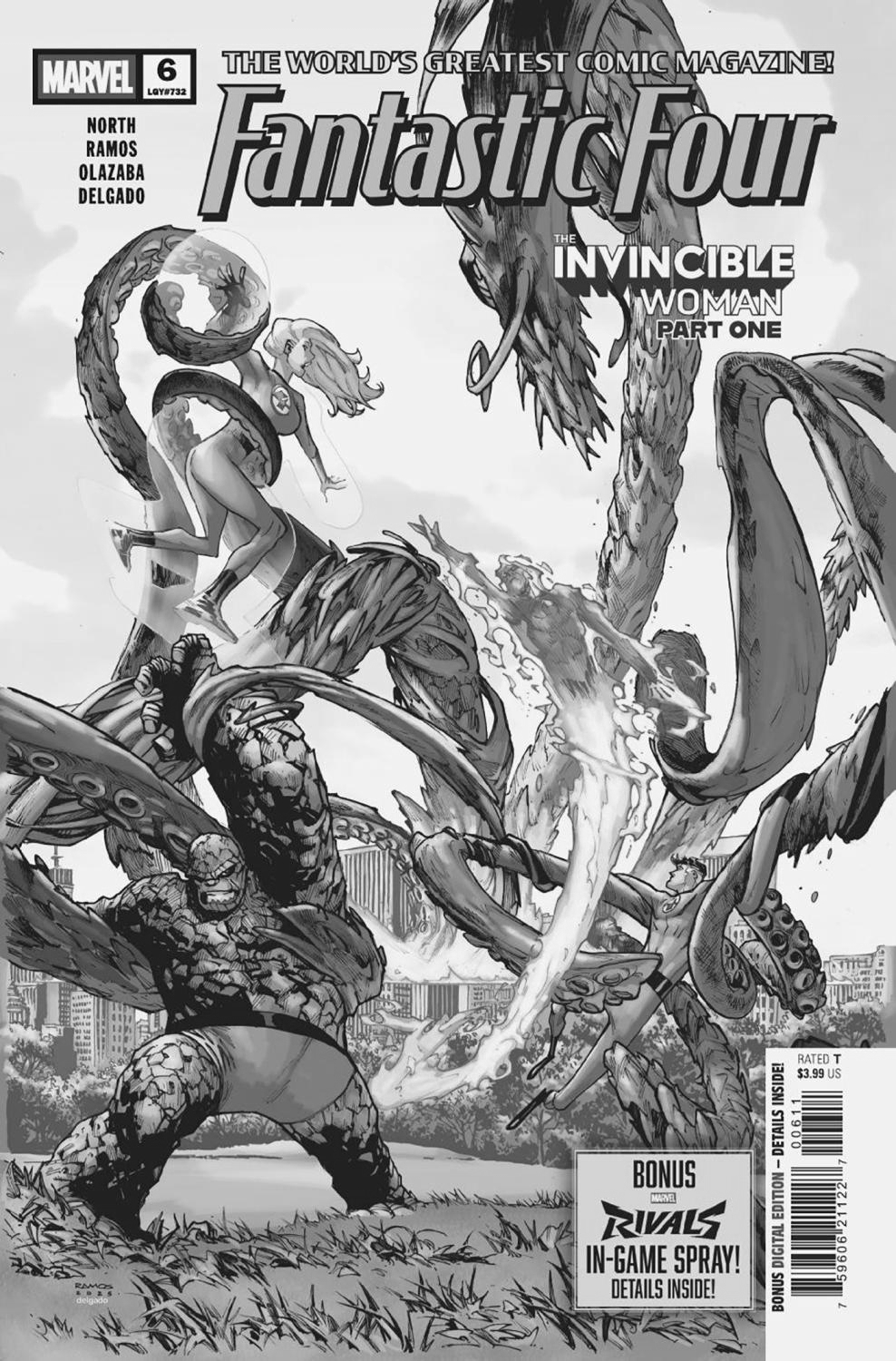 THE INVINCIBLE WOMAN, PART 1! Extremophile aliens have invaded Earth! Their plan: stop the planet's rotation so the same side always faces the sun, and then colonize that boiling, deadly side for themselves. Only the Fantastic Four can save the Earth from destruction! But none of their powers involve altering the Earth's rotation...or do they? And when the Wizard takes advantage of the chaos to attack the Baxter Building, there may be more going on here than meets the eye - including a discovery that'll change the fate of the Fantastic Four forever! Science, family and punching collide in this issue. PLUS: The beginnings of the all-new Future Foundation?The issue contains a Marvel Rivals redeem code for an in-game MALICE WILL RULE spray featuring Invisible Woman’s iconic “Malice” costume.