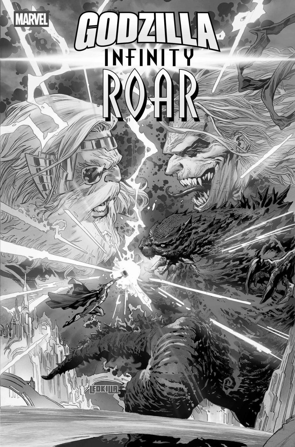 KNULL X GODZILLA: ALL-OUT ASSUALT ON ASGARD! GODZILLA's rampage has reached the Rainbow Bridge as THOR leads an army in Asgard's defense! As chaos erupts, KNULL slips away to enact a secret plan to spread his symbiotes across the galaxy - will the All-Father, ODIN, be able to stop him as Kings and Gods collide? Meanwhile, across the cosmos, DOCTOR DOOM has enacted a secret plan of his own that could tip the scales - but in what direction, no one knows!