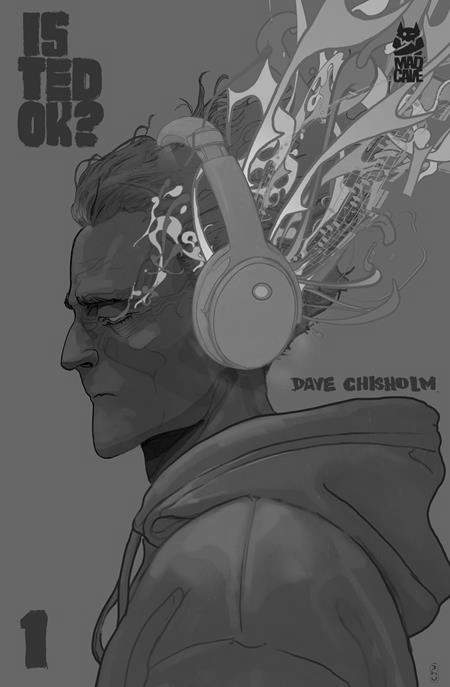 This is a story about Ted and Sarah. Ted, isolated and paranoid, works for a mega-corporation owned by the world's only trillionaire. He suffers from night terrors, obsessively draws the same mysterious figures again and again, all while listening to one track of music on repeat–oh, and the only "person" he ever talks to is a stray cat. His humanity is hanging by a thread. Sarah is a new arrival to the city, fighting her own demons, and her job is to remotely spy on Ted to ensure he doesn't hurt anyone... or himself. When Ted's mental state begins to crack, Sarah compassionately intervenes to help, and things go catastrophically wrong. IS TED OK? mashes up the paranoid existentialism of SEVERANCE with the cosmic sci-fi of AKIRA while exploring what happens when the act of help goes horribly wrong. From creator Dave Chisholm (SPECTRUM, MILES DAVIS & THE SEARCH FOR THE SOUND), Is Ted OK? is a spectacularly unpredictable yarn–each successive issue shatters the scope of the previous, all without losing its core: a search for human connection in an oppressive, paranoid world.