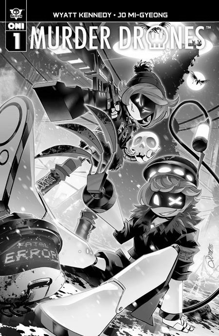 Based on Glitch Productions' global animation phenomenon created by Liam Vickers and now streaming on Prime Video, it's three cheers for 'destroy all humans' as all-star creators Wyatt Kennedy (Nights, Marvel Voices) and Jo Mi-Gyeong (Eve, The Dark Crystal: Age of Resistance) unleash the record-setting comics adaptation of the series that you have watched 330 million times: MURDER DRONES! In the far future on the desolate exoplanet designated Copper 9, the humans are long gone but the robotic worker drones they created to mine the planet's resources are still hard at work. Together, they have managed to forge their own makeshift society . . . or so they thought until a previously unknown kind of robot—the dreaded 'Murder Drones'—are activated by a long-forgotten human-scripted protocol to disassemble any worker that deviates from its original programming. But when a rebellious young worker drone named Uzi forms an unlikely alliance with two disassembly drones—Serial Designations N and V—can they, together, uncover the secrets of their origins . . . and stop the spread of the unsettling mechanical virus known as the Absolute Solver? Robots, violence, teen angst, mad science, love, loss, doors, hormones, and chaos! What more could you ask for? A pen, perhaps? It's a clicky pen! (Ask your kids. They'll get it!)