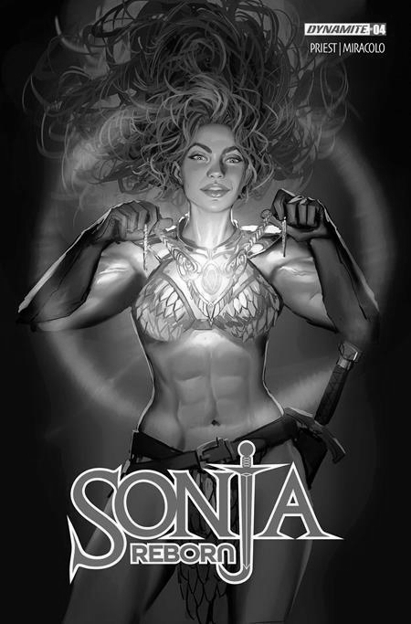 HELL'S COMING WITH HER! Faolán, Red Sonja's young squire, has been kidnapped while the feverish She-Devil recovers from a near-fatal illness. Now lost and alone without her guide to the Hyborian world, the reborn Sonja gives in to her darkest impulses, embracing the burning rage within her as she hunts down the boy's abductors. The codependent creative team of CHRISTOPHER PRIEST and ALESSANDRO MIRACOLO unleash the fury of their reluctant heroine in Sonja Reborn #4 — featuring fiercely refined covers from STJEPAN SEJIC, STUART SAYGER, CHAD HARDIN, GREG LAND, and cosplay by ANI-MIA!