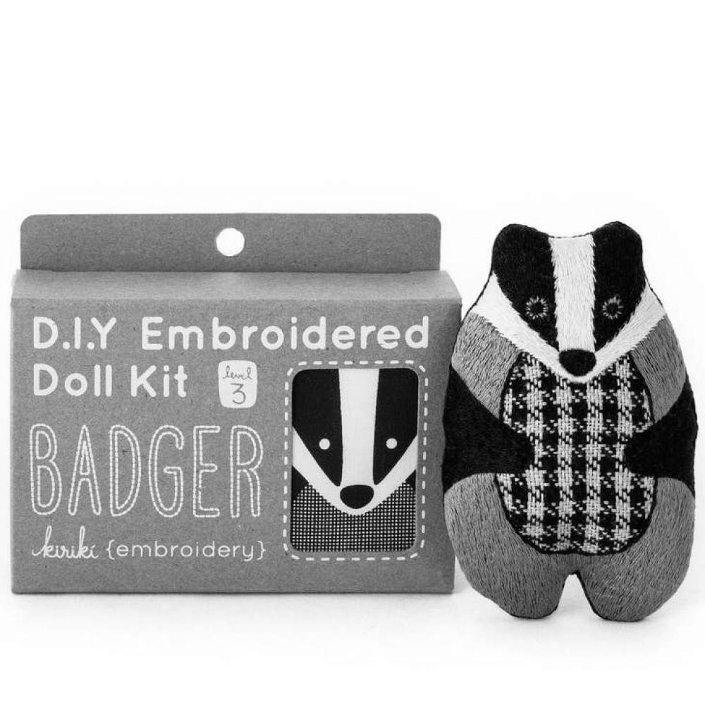 Badger is a Level 3 pattern, using a variety of stitches that cover up most of the pattern surface. Great for adventurous beginners or seasoned stitchers!All Kiriki patterns are screen printed by hand with vibrant, water-based inks right onto the fabric so no tracing or transferring is ever required!D.I.Y. Embroidered Doll Kits include:• Screen printed pattern on cotton• Printed backing fabric• No. 9 needle• Range of DMC Embroidery Floss• Stuffing• Step-by-step instructions• Full size colour image of finished doll• Screen printed packaging - perfect for gift giving!