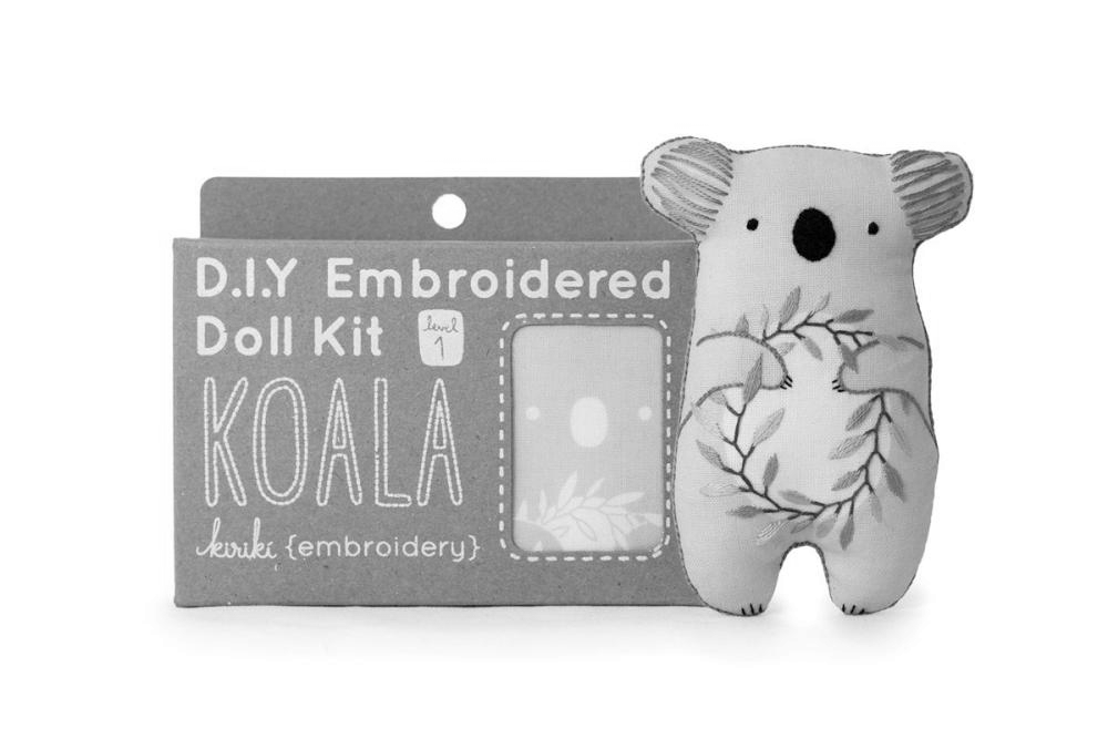 Koala is a Level 1 pattern, great for beginners because it features basic stitches used sparingly.All Kiriki patterns are screen printed by hand with vibrant, water-based inks right onto the fabric so no tracing or transferring is ever required!D.I.Y. Embroidered Doll Kits include:• Screen printed pattern on cotton• Printed backing fabric• No. 9 needle• Range of DMC Embroidery Floss• Stuffing• Step-by-step instructions• Full size colour image of finished doll• Screen printed packaging - perfect for gift giving!