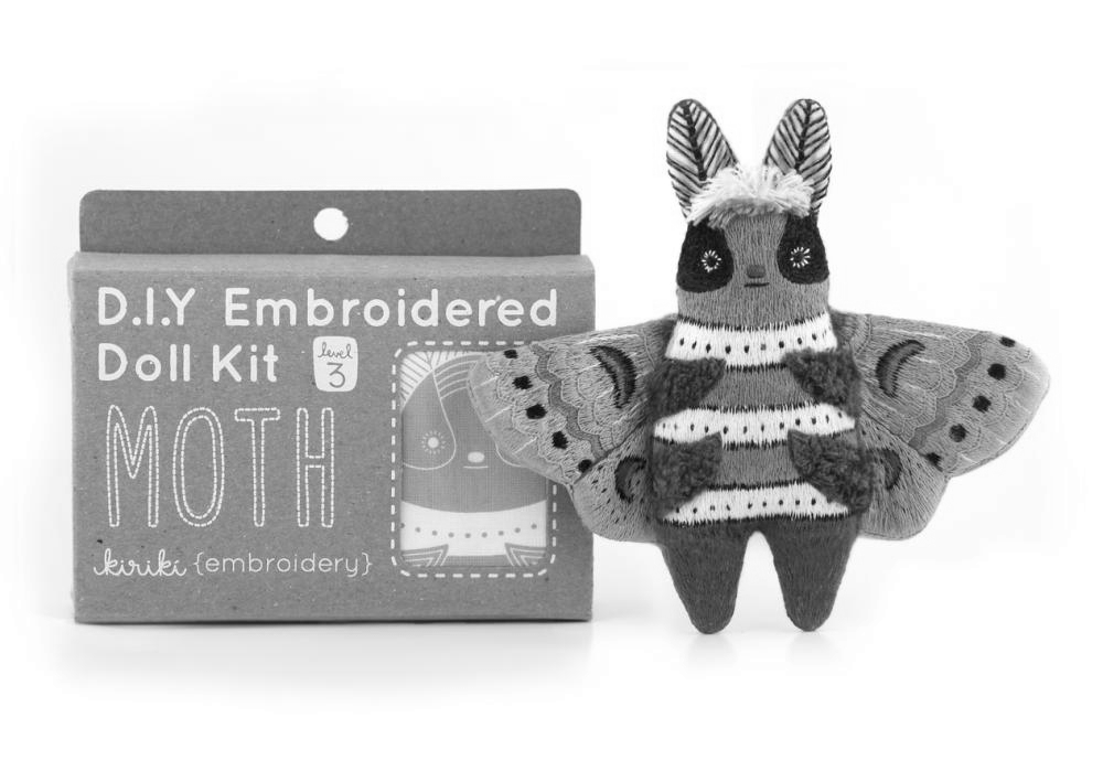 Moth is a Level 3 pattern, using a variety of stitches that cover up most of the pattern surface. Great for adventurous beginners or seasoned stitchers!All Kiriki patterns are screen printed by hand with vibrant, water-based inks right onto the fabric so no tracing or transferring is ever required!D.I.Y. Embroidered Doll Kits include:• Screen printed pattern on cotton• Printed backing fabric• No. 9 needle• Range of DMC Embroidery Floss• Stuffing• Step-by-step instructions• Full size colour image of finished doll• Screen printed packaging - perfect for gift giving!Recommended for Ages 12+The finished plushie is about 4.5"/11cm tall.You need a 6" hoop to embroider this pattern.