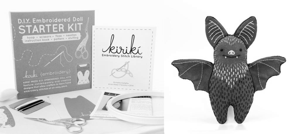 Bat is a Level 1 pattern, great for beginners because it features basic stitches used sparingly.All Kiriki patterns are screen printed by hand with vibrant, water-based inks right onto the fabric so no tracing or transferring is ever required!D.I.Y. Embroidered Doll Kits include:• Screen printed pattern on cotton• Printed backing fabric• No. 9 needle• Range of DMC Embroidery Floss• Stuffing• Step-by-step instructions• Full size colour image of finished doll• Screen printed packaging - perfect for gift giving!