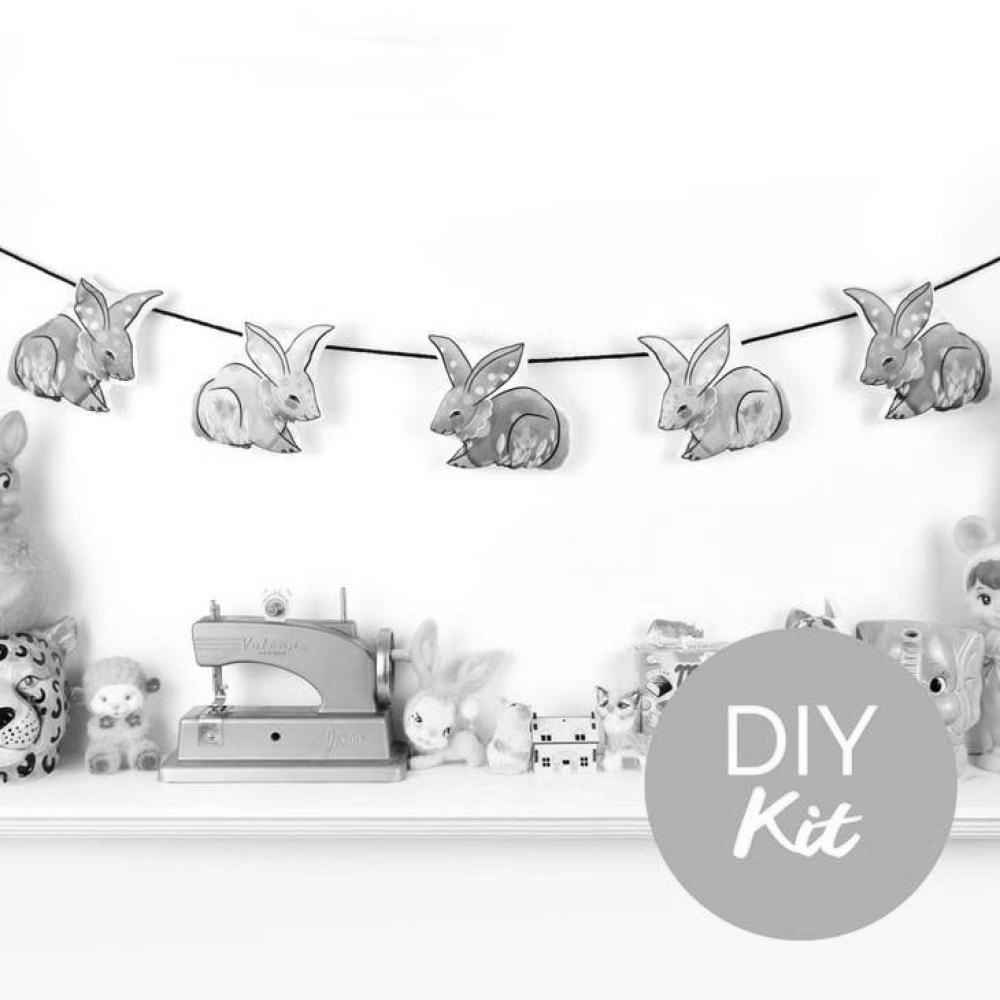 DIY Kit to make your own bunnyting! - You will receive the printed soft velvet fabric for 5 super cute circus bunnies, colours as pictured, cotton backing, black cord to hang from and full instructions. (Stuffing is NOT included.) Each bunny measures 11 x 13 cm and the cord is 1.2 metres long to hang them from but you could space them out more if preferred!A great gift for any circus, bunny or folk art fan or just lovers of cute, kitsch and the eclectic!