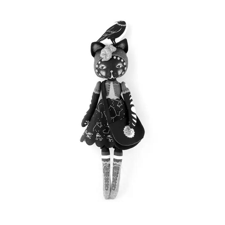 DIY sewing kit - you will receive the printed cotton fabric and full instructions as well as the buttons for the joints :) (stuffing and thread NOT included)Astrid is 13 inches high when made up, made of organic cotton for a vintage feel. She has buttons for her hinges on his arms and legs so isn't suitable for small children and isn't a toy. She comes with a set of 24 fortune telling cards to put in her bag :)I take no responsibility for incorrect fortunes or advice, Astrid is fully trained in astro guidance but it is up to you as to how you use her feline advice :)A great gift for celestial cat lady or just lovers of cute and kitsch!