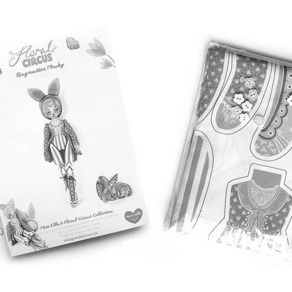 DIY KIT - so you will receive the printed cotton fabric and full instructions as well as the buttons for the joints.(stuffing and thread is NOT included)Mewky is 13 inches high when made up, made of organic cotton for a vintage feel. She has buttons for her hinges on his arms and legs so isn't suitable for small children and isn't a toy. She comes with her faithful bunny who accompanies her every time she opens the circus!Mewky the Ringmaster is a cat but she likes to pretend to be a bunny, hence the hat. She also comes with a choice of faces on the fabric.A great gift for lovers of circus dreams, the cute and the kitsch!