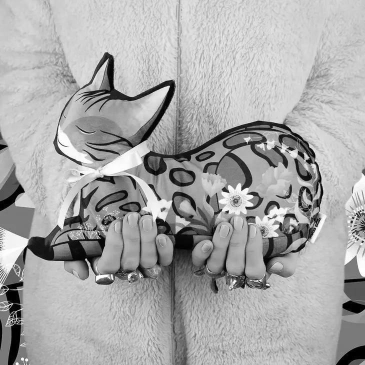 Bengal Kitten DIY KIT *please note this is a kit you make yourself!*This scrumptious Bengal kitty illustration by myself is printed onto super soft poly velvet available in teal blue or brown as pictured with bell and ribbon collar.You will get the front and back pieces of fabric and instructions, the backing is plain black cotton drill for durability. (no filler is included)Available in natural brown awake and dreaming of dinner or teal blue sleeping.12 inches wide x 8 inches deep.