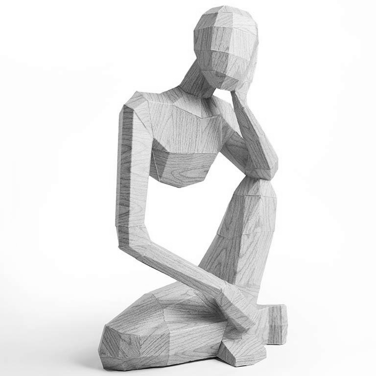 PRE-CUT and PRE-FOLDED PaperCraft Origami.A mesmerizing masterpiece to be used as a shelf decoration or unique desk ornament, this artistic 3D paperart model abstract resembles a wooden mannequin model casually sitting in contemplation.-Enjoy a calming and rewarding experience.-Bring life and character to any room.-An excellent bonding activity for family and friends of all ages.-Disconnect from devices and reconnect to creativity.Just follow the instructions and have fun!-No scissors are needed.-100% recycled materials and fully recyclable.Difficulty: ★★★ NormalMeasures HxWxD (cm/in): 35cm x 20cm x 10cm / 13.8"x 7.9" x 3.9"Material: Fortified 250gsm paperboard (pearlescent) - in other words, it’s strong!
