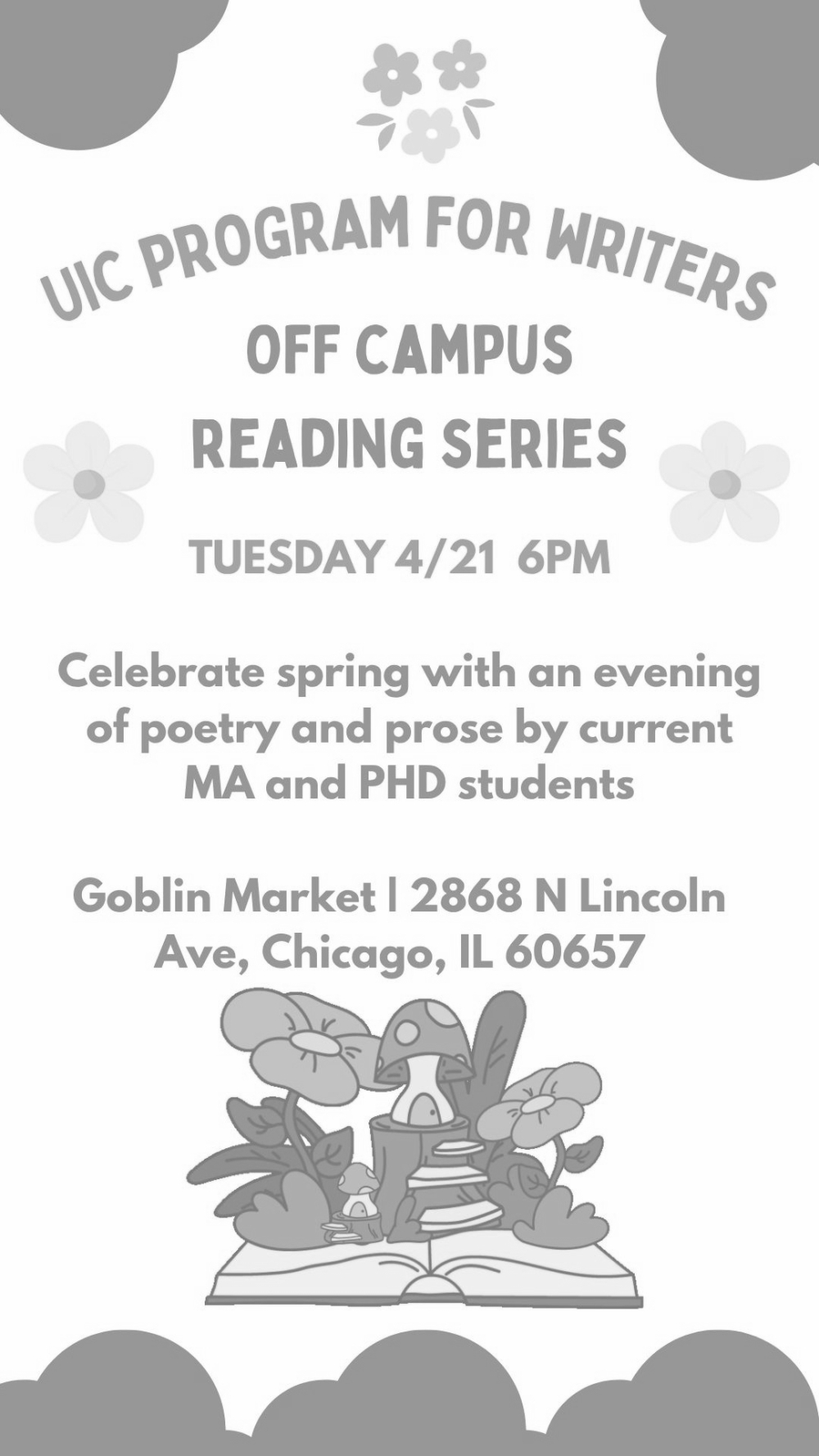 Celebrate spring with an evening of poetry and prose by current MA and PHD students in UIC's writing program!