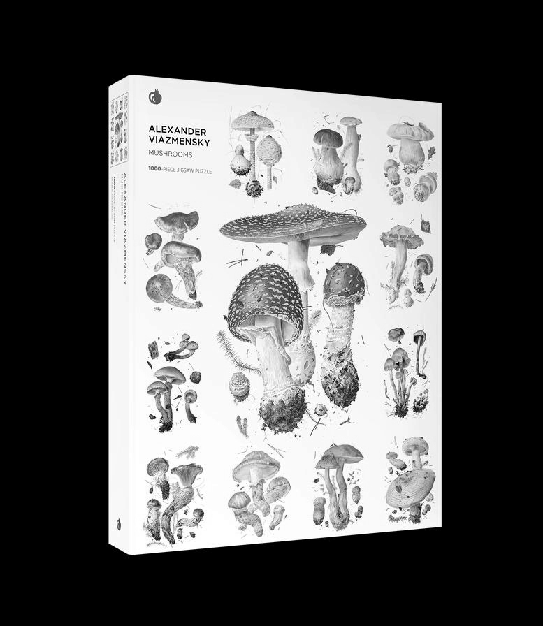 Mycological marvels! Whether edible or poisonous, all mushrooms can be appreciated for their astonishing variety of form, texture, and color. Mushrooms can also pack a powerful punch in terms of nutritional and medicinal values, and they are respected for their sustainability and low environmental impact. Experts enthuse about their potential to heal the planet’s ills.Artist Alexander Viazmensky calls mushrooms “flowers of the woods.” For decades he has specialized in painting life-size mushroom portraits. Thirteen of Viazmensky’s fantastic fungi have been gathered in this 1000-piece jigsaw puzzle, and all are identified on the enclosed pictorial insert. Happy (mushroom) hunting!• Gather with family and friends for puzzle-piecing together!• Our luxury puzzles are crafted with attention to every detail.• High-quality 250-GSM matte artpaper for superior color, crisp details, and no glare.• Ribbon-cut thick board for snug fit and minimal dust.• Produced using thick recycled paper board.• Includes a 9 x 12 in. insert of the art for puzzle assembly reference.• Exclusive selection of art from museums and artists around the world.Box size: 10 x 13 x 1.875 in.Puzzle size: 20 x 25 in.