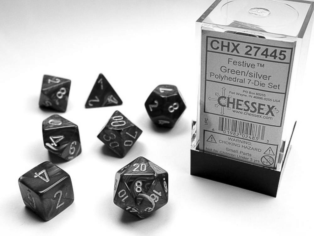 Chessex Festive Green/silver Polyhedral 7-Die Set