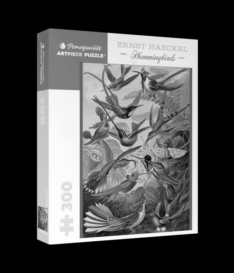 Ernst Haeckel (German, 1834–1919)Trochilidae – Kolibris,From Kunstformen der Natur, 1904Hummingbirds dart energetically around this artful, scientific illustration by German biologist Ernst Haeckel. His elaborate forms have been called a precursor to Art Nouveau, and you might well imagine these winged beauties as decorative ornaments. There are plenty of colors, lines, and shapes to keep you occupied while completing this 300-piece jigsaw puzzle.• Gather with family and friends for puzzle-piecing together!• Our luxury puzzles are crafted with attention to every detail• High-quality 250-GSM matte art paper for superior color, crisp details, and no glare• Ribbon-cut thick board for snug fit and minimal dust• Produced using thick recycled paper board• Exclusive selection of art from museums and artists around the worldPublished with the Library of CongressBox size: 8.625 x 10.625 x 1.875 in.Puzzle size: 18 x 24 in.