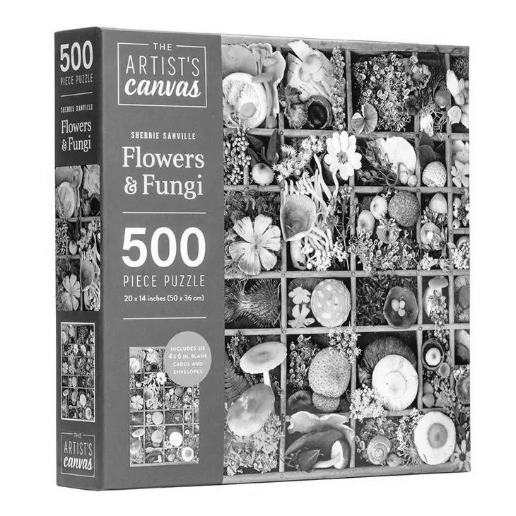 500 PIECES: Perfectly balanced between challenging and relaxing, this puzzle will delight the first-time puzzler as much as the seasoned expert. THE ART OF MUSHROOMS: Flowers and fungi come together in this visually stunning display of color by artist, forager, and photographer Sherrie Sanville.19.7” x 13.76” WHEN COMPLETED: The ideal size to display and assemble on a coffee, dining, or card table. SET OF 6 BLANK NOTE CARDS INCLUDED: A set of 6 note cards and envelopes featuring the puzzle design are included as a bonus for you to use or display.FUN ON YOUR OWN OR WITH THE FAMILY: Gather the family to connect while piecing the puzzle together, or let the stresses of the day slip away as you construct this intricate puzzle.