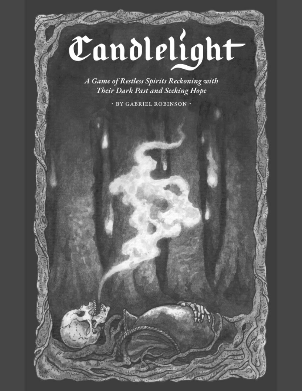Candlelight is Rooted in Trophy, using the core system of Trophy Dark to tell as story of desperate characters pushing their luck in a place that constantly threatens to overwhelm them. The key difference here is that the characters have already met their doom - while Trophy Dark progresses through a series of Rings and escalating horror, Candlelight starts at that final Ring where the characters have just died. It is at the dark heart of the forest that they will begin their journey, retracing the steps they took while living, seeking hope and an escape from the forest before they become a monstrosity that haunts it forever.