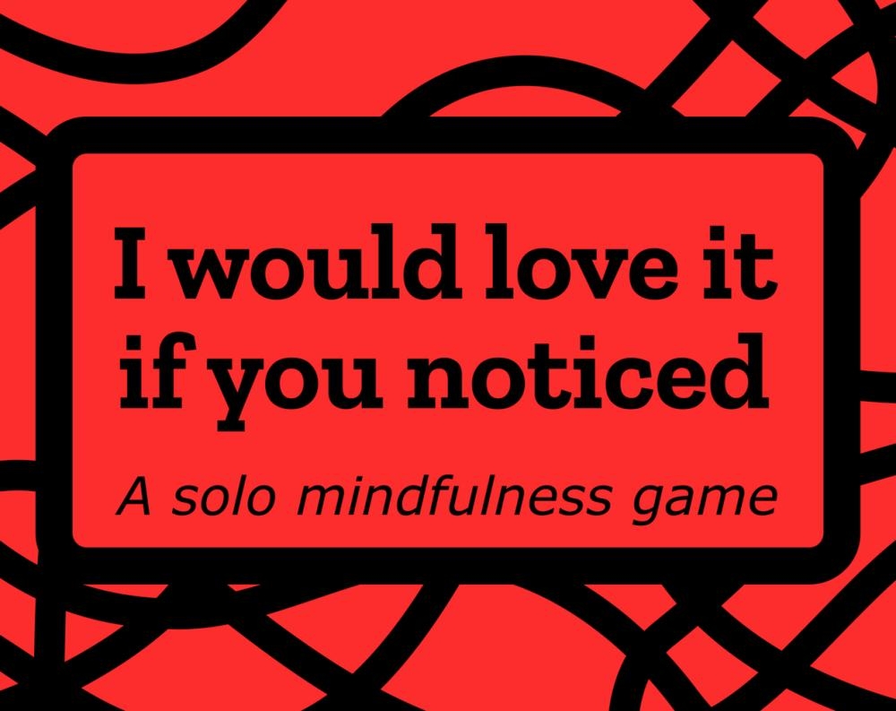 “I would love it if you noticed" is a solo mindfulness reflection game where you notice something that day and use it to create a character. After two weeks you can overcome obstacles with your character and incorporate them in other games. It's a great tool to help with meditation and observe your life through an outsider's perspective. Features a full journal to keep your thoughts in and document your character’s adventures.