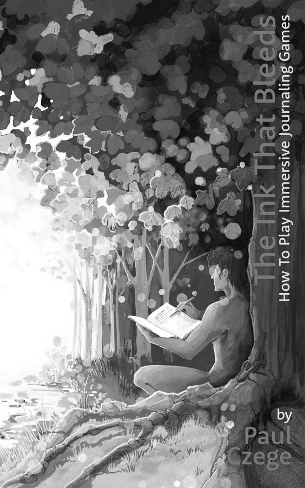 A zine about how to play immersive journaling games. Covers bleed, immersion, writing to find out, self care, why to write dialogue, the landscape of your unconscious, how to choose games, and more. Includes many supporting examples from the writer's own play.—I've been playing so many journaling games the past two years. I learned shapechanging from a witch in the Minnesota wilderness, killed a mind-controlling supervillain with a sword pulled from my own body, had an ill-considered sexual relationship with a married woman, and more — and I learned so much about how immersion works, and bleed, and how fun and affecting journal game play can be.The Ink That Bleeds is my new, original, essential guide to the experience and practice of immersive journal gaming.(Cover art by Carrie Alyson)