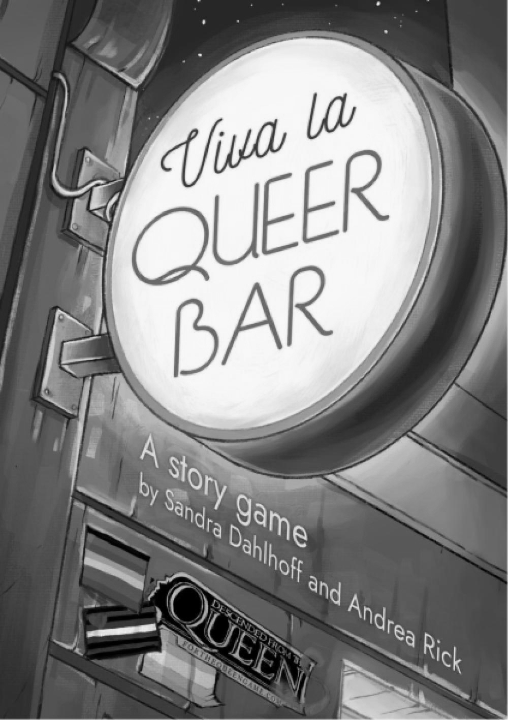 Viva la QueerBar is great for complete newbies to role-playing games and fun for experienced TTRPG players alike. It welcomes players of all genders and orientations who are willing to take on the perspective of a queer character for the duration of the game. Since this is a story game more than a role-playing game, however, you will spend more time describing your character's thoughts, feelings, and actions than you will acting as your character.