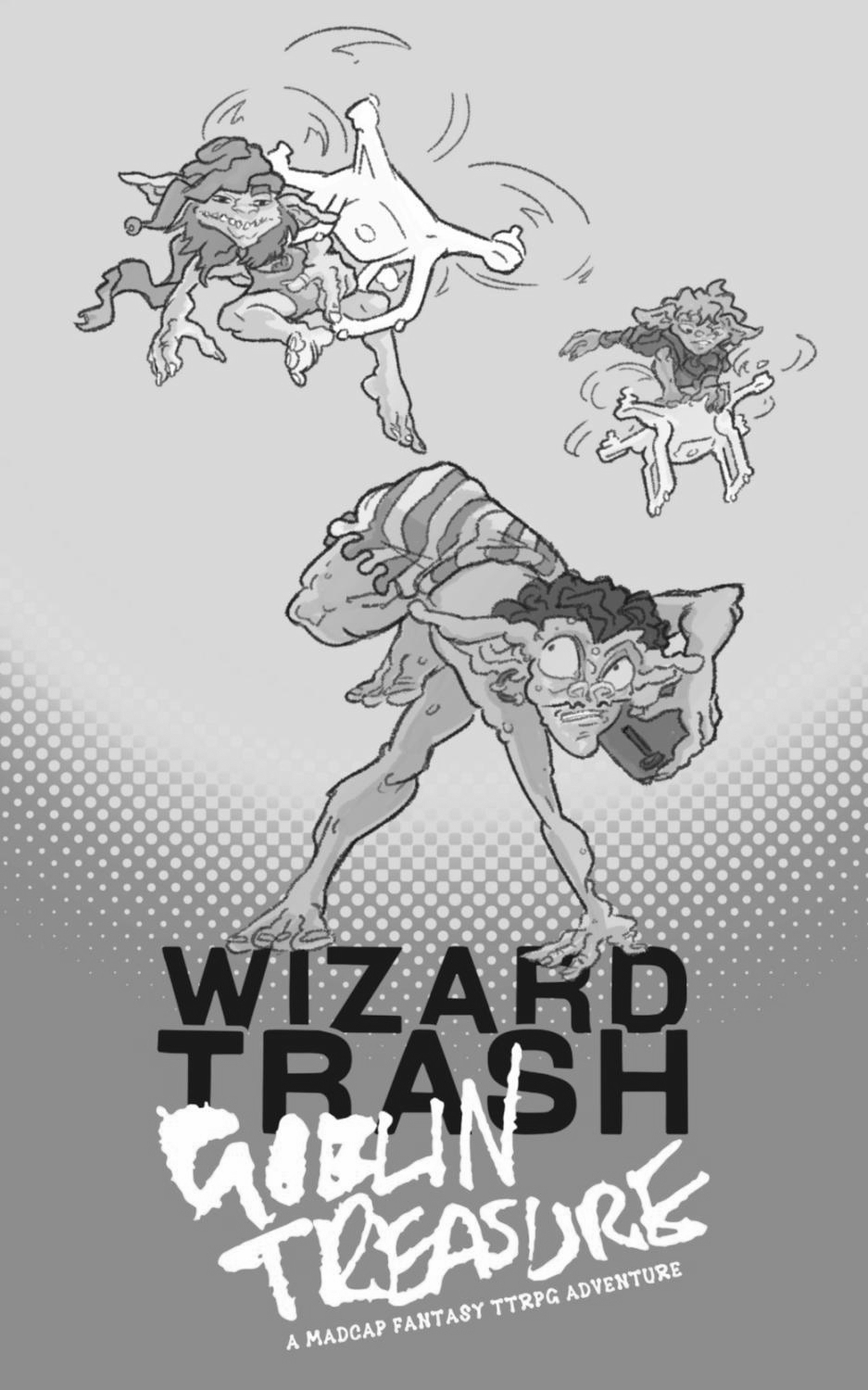 Wizard Trash, Goblin Treasure is a madcap fantasy adventure of summoned autonomous drones, resourceful goblins, and a down-on-his-luck wizard with a penchant for transdimensional retail therapy.Cornelius's hobby of summoning objects from modern-day Earth has gotten out of control.Using the caves below his house as a dumping ground for unwanted items has led to the goblin denizens collecting high-tech gadgets and hip accessories. In order to seize direct control of this consumerist bounty, they captured Cornelius but got into a turf war with his summoned defensive drones.Players will dodge drones and parley with goblins on their way to ~~rescue him~~ …make sure he's up to date on his taxes? Any rescuing is to be done on your own time and coin!Written for Brighter Worlds but with stats for Cairn and the Common Rules for Adventure Campaigns by Knock for easy conversion into your system of choice.