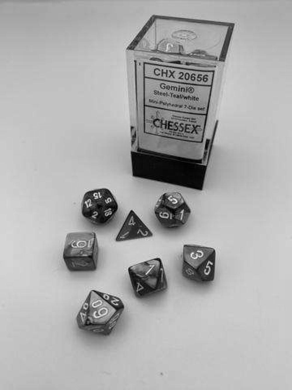 Chessex Mini-Polyhedral 7-Die Set: Gemini - Steel-Teal/White