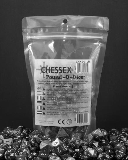 Looking for an inexpensive way to increase your dice collection? The Pound-O-Dice™ is the perfect solution. Each pound has approximately 100 dice in assorted shapes and colors with quantities weighted in favor of d6's, d10's, and d20's. Also included is a full 7-die set randomly selected, specially made polyhedral dice that are only available in this product.