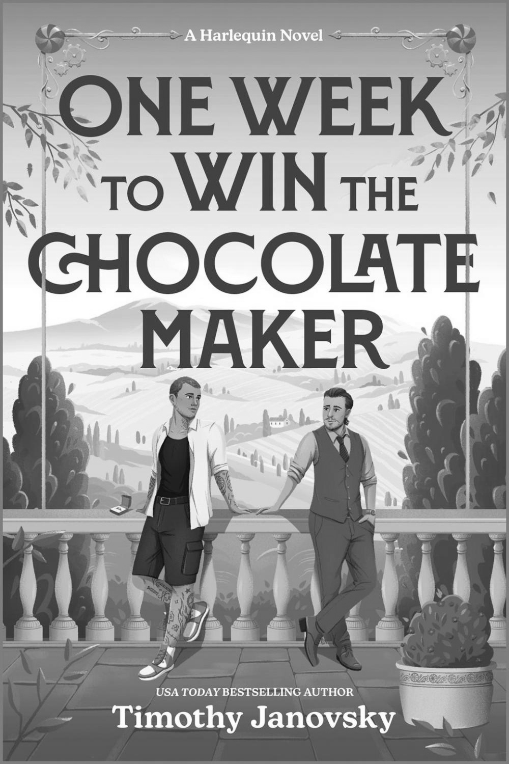 A sexy, luscious opposites attract gay romance inspired by Charlie and the Chocolate Factory set in the gorgeous backdrop of Italy. For fans of Casey McQuiston and Alexis Hall, mental health representation and fancy chocolate, this love story is as sweet as it is spicy.The spiciest risks lead to the sweetest rewardsin this delicious, MM retelling of Willy Wonka and the Chocolate Factory. Dario Cotogna has a problem. Per his late grandfather’s wishes, if Dario’s not married by his thirty-second birthday, his family’s chocolate empire will go to his philandering little brother. To make matters worse, Dario’s agoraphobia keeps him locked away from the rest of the world. How can he put himself out there and meet “the one” if he literally can’t put himself out there?The solution? A global competition. Five lucky contestants get an all-expenses-paid trip to Dario’s luxury Italian villa for a chance at becoming his lawfully wedded spouse.But aspiring tattoo artist Charlie Moore isn’t looking for love—he’s looking for a miracle. As his grandparents’ sole caregiver, he’s desperate to keep their bill collectors at bay. Marrying into the Amorina Chocolate fortune could save his family home from foreclosure. But when Charlie meets the brilliant heir, their attraction is instant—and very, very real.After a whirlwind week of wine, indulgence and temptation as spicy as it is sweet, will Dario and Charlie melt under the pressure…or find a love that’s truly worth savoring?One Week to Win the Chocolate Maker is a spicy, fast-paced romance you can read in one sitting.