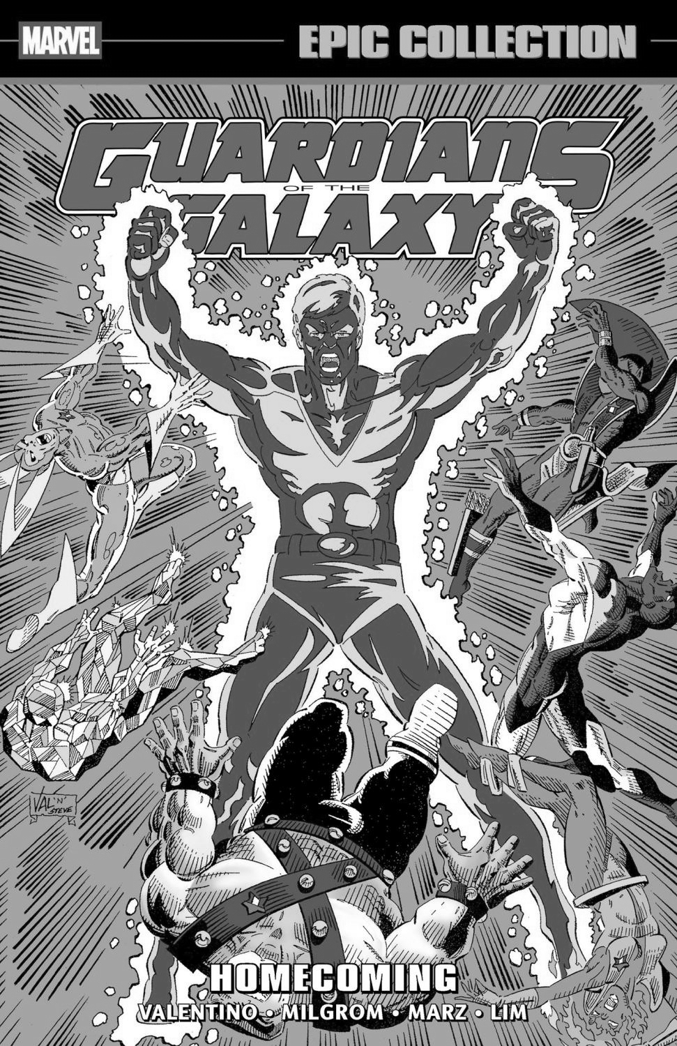 Comic industrty legend Jim Valentino continues his fascinating look at the 31st century Marvel Universe with the original incarnation of the Guardians of the Galaxy!The original Guardians of the Galaxy land on the World of Mutants but soon wind up in the middle of a violent rebellion against Wolverine’s descendant Rancor! And to make matters worse, there’s a Dark Phoenix on the loose! Hope they survive the experience! Then it’s off to rescue Firelord, a cosmic clash with Ghost Rider and the debut of the mysterious Protégé —culminating in an epic battle with the Punisher of the 31st century. Wait, did we say Punisher? More like Punishers — a whole army of them! Plus: The Guardians track the cosmic power of Korvac through time and space — along the way encountering the Fantastic Four, the Silver Surfer and the future Thor! And a major turning point in the life of Vance Astrovik! Who is Major Victory? COLLECTING: Guardians of the Galaxy (1990) 7-20, Guardians of the Galaxy Annual (1991) 1; material from Fantastic Four Annual (1963) 24, Thor Annual (1966) 16, Silver Surfer Annual (1988) 4