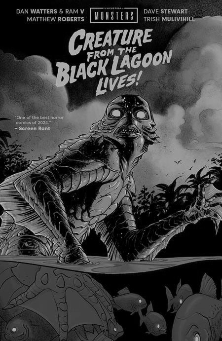 Perfect for fans of THE MANY DEATHS OF LAILA STARR and UNIVERSAL MONSTERS: DRACULA – UNIVERSAL MONSTERS: CREATURE FROM THE BLACK LAGOON LIVES! brings a new story about everyone’s favorite creature up from the watery depths.A NEW HORROR DREAM TEAM RESURRECTS ONE OF THE MOST ICONIC MONSTERSAcclaimed creators Dan Watters (Home Sick Pilots, Lucifer), Ram V (The Many Deaths of Laila Starr, Batman: Detective Comics), and Matthew Roberts (Manifest Destiny) rise from the depths for an all-new epic.Years after the events of the original film, Journalist Kate Marsden hunts for a notorious serial killer in the heart of the Amazon. Hot on the trail of this madman, she soon encounters an unexpected new threat -- but is he friend or foe? Or is he simply...THE CREATURE FROM THE BLACK LAGOON?Collects UNIVERSAL MONSTERS: CREATURE FROM THE BLACK LAGOON LIVES! #1-4.