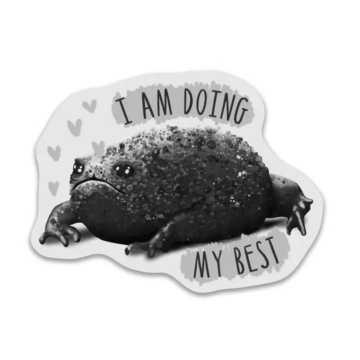 Get notified of new releases like BoyPilot Goods Sticker: Black Rain Frog - I Am Doing My Best